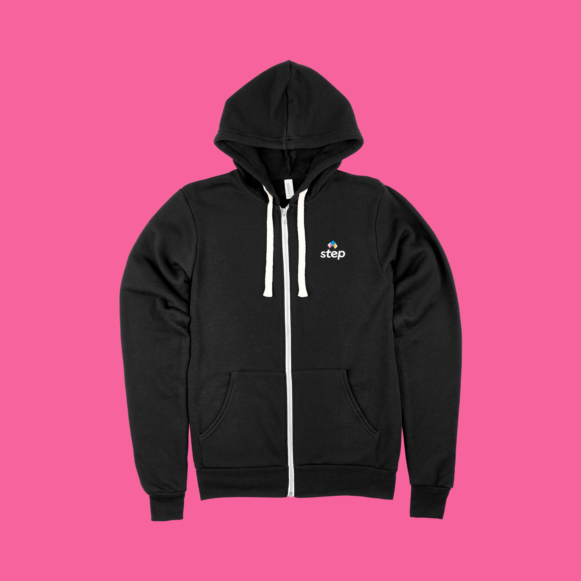 - Step logo embroidered at left chest on full zip fleece hoodie